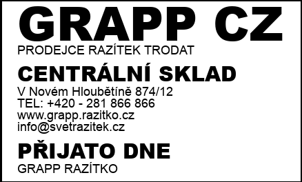 Professional 5474 DATUM+ČAS Navrhnout otisk a vložit do košíku 60 x 40 mm Běžná cena: 1 975 Kč Vaše cena: 1 876 Kč Příklad otisku 1:1