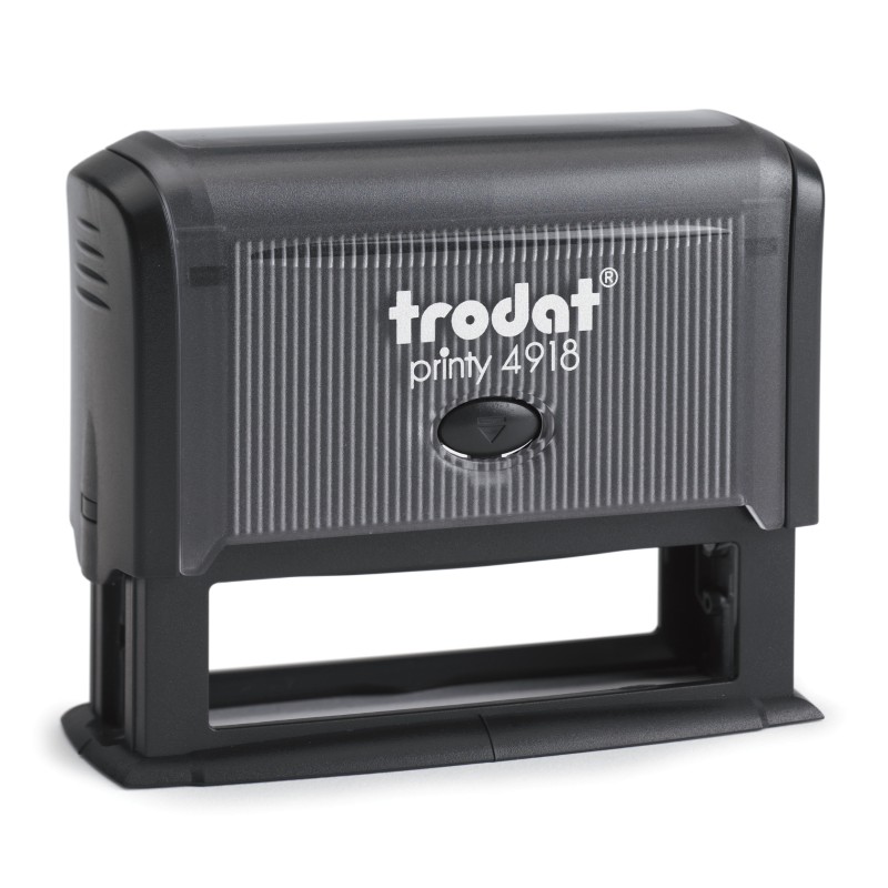 Plastová samofarbiaca pečiatka. Veľkosť odtlačku: až 75 x 15mm. Možné farby odtlačku: čierna, modrá, červená, zelená a fialová.Náhradný vankúšik: 6/4918